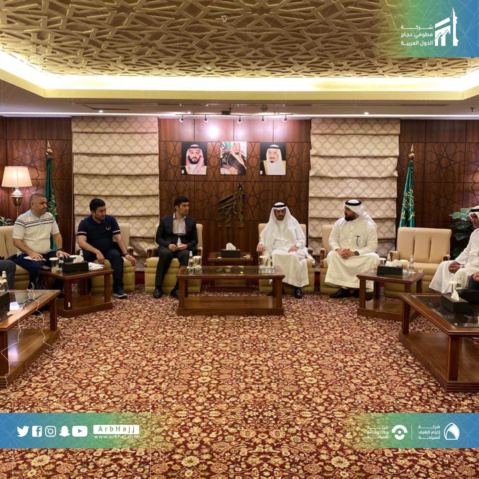 تشرفنا بزيارة سعادة القنصل العام لجمهورية أوزباكستان السيد شهرت تبشا بايوف والوفد المرافق له لمقر الشركة وكان في استقباله رئيس مجلس الإدارة أ.ماهر جمال ،جرى خلال الاستقبال الإطلاع على الخدمات المقدمة لضيوف الرحمن ومناقشة أوجه التعاون بين الجانبين .