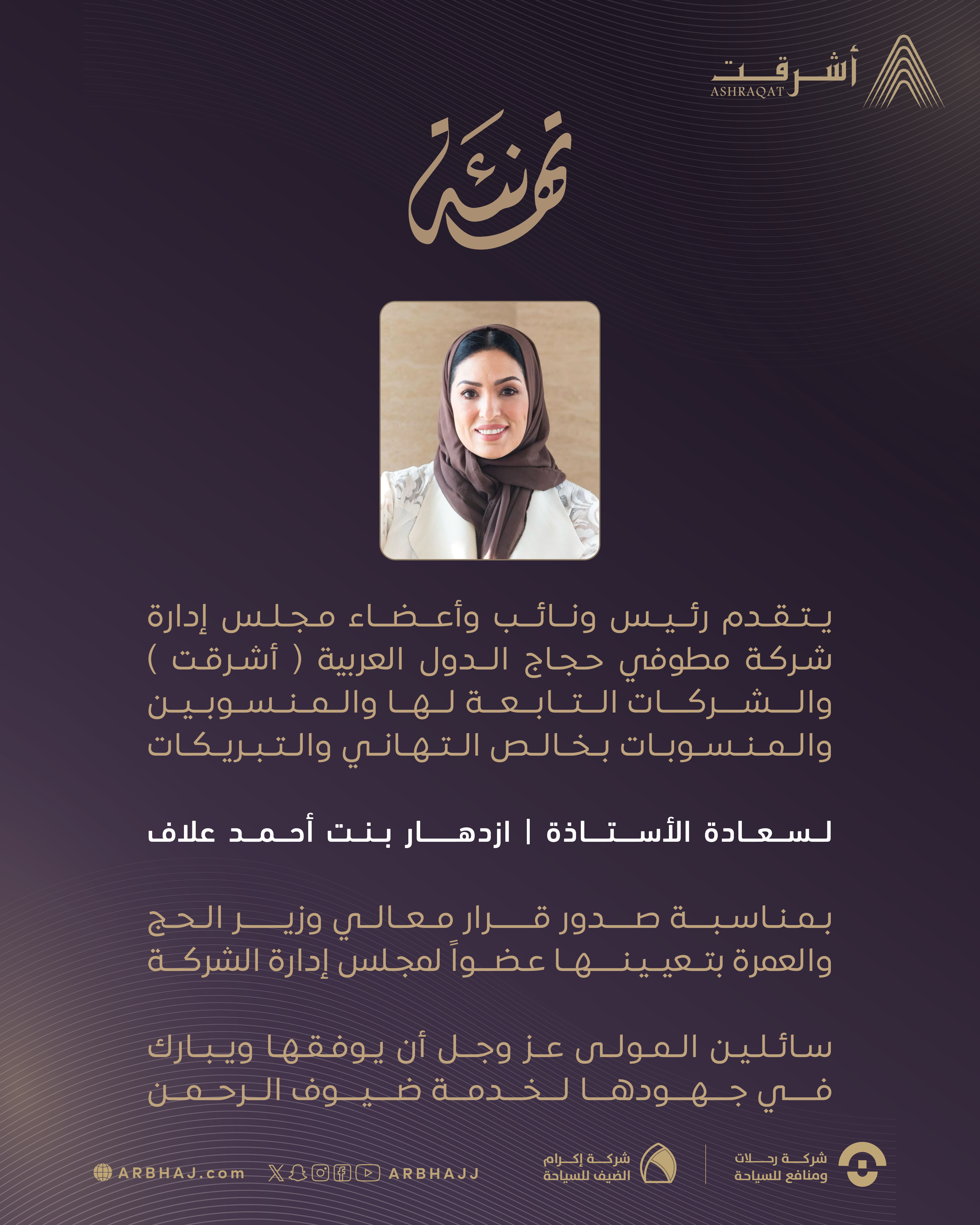 تهنئة للأستاذة ازدهارعلاف بمناسبة تعيينها عضواً لمجلس الإدارة