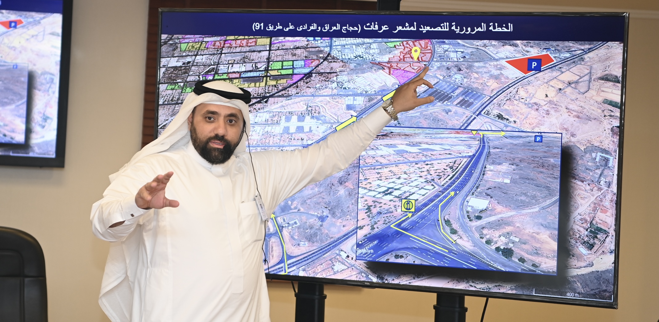 كما تناول بالشرح مقدما الورشة م. علاء وَقّاد المشرف على إدارة النقل والتصعيد وأ. لؤي القرشي المشرف على مشعر عرفات خطة الرد والردين والتعريف بالطرق المخصصة لنقل حجاج الدول العربية بالإضافة إلى تقسيم المواقف لمراكز خدمة شركة رحلات ومنافع ..