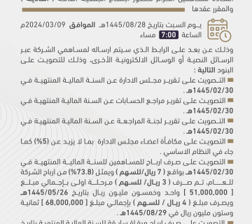 دعوة الجمعية العامة غير العاديةAbdulkareem 10gأكتوبر 13, 2025دعوة الجمعية العامة غير العادية لشركة مطوفي حجاج الدول العربية رابط تسجيل الحضور بوابة المساهمين ... Read More