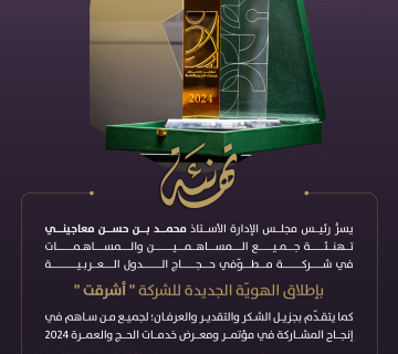 أشرقت تهنئ القيادة والشعب السعودي النبيل بمناسبة يوم التأسيسNisreen Jamalفبراير 22, 2024رئيس ونائب وأعضاء مجلس إدارة أشرقت والشركات التابعة لها يرفعون التهاني للقيادة الرشيدة بمناسبة يوم التأسيس ... Read More