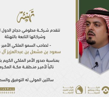 يتقدم أعضاء مجلس الإدارة و منسوبي ومساهمي الشركة بالتهنئة لسعادة الاستاذ محمد بن حسن معاجيني على تعيينه رئيساً لمجلس إدارة #شركة_مطوفي_حجاج_الدول_العربية سائلين الله تعالى له ... Read More