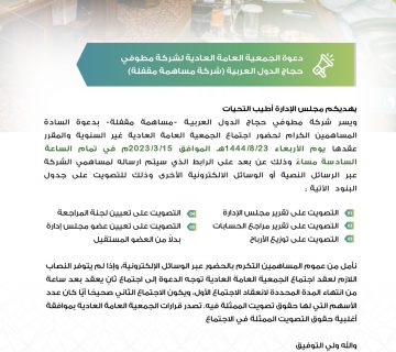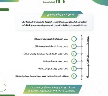 تعلن شركة مطوفي حجاج الدول العربية عن طرح مناقصة لتأمين عمالة نظامية التقديم عبر منصة فرصة على الرابط التالي : https://2u.pw/Sd3FGr ... Read More